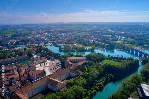 Aerial photography with drone. Beautiful view of the city of Peschiera del Garda, Italy.