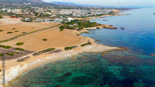 Aerial pictures made with a dji mini 4 pro drone over Coral Bay, in Cyprus.