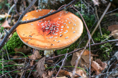 multi, mottled, enchanted, fairy tale, magic, deadly, descriptive, hidden, background, organism, poison, rare, biology, medicine, toxic, curved, dangerous, umbrella, spotted, grow, parasol, poisonous, realistic, growing, plant, danger, mushroom, orange, ground, leaf, mushroom, toadstool, white, fungal, boletus, botanical, colourful, season, beauty, colours, grass, green, nature, organic, plant, musk, mycology