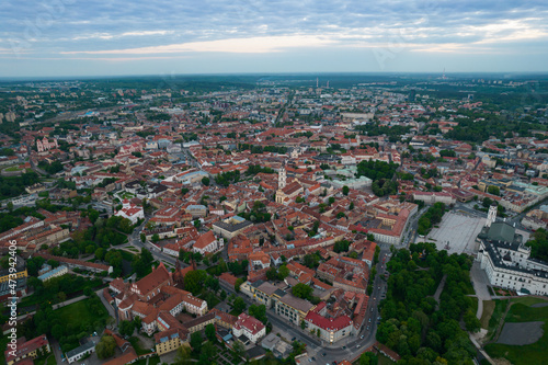 Aerial summer spring evening sunset view in sunny Vilnius old town