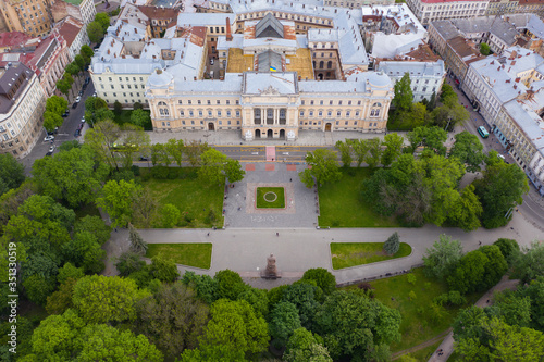 Aerial veiw on Ivan Franko National University of Lviv from drone