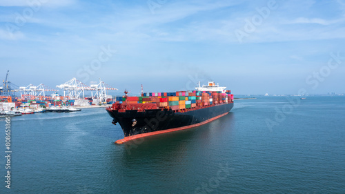 Aerial view container cargo ship maritime carrying container, Global business import export logistic freight shipping transportation international by container cargo ship, Container fright shipping.