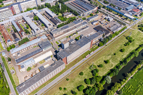 aerial view, building, industrial, area, industry, urban, city landscape, factory, plant, warehouse, storage, manufacture, development, structure, industrial park, investment, business, environment, logistic, suburb, city, office, distribution, energy, scenery, intersection, technology, transportation, outdoors, background, damage, pollution, ecology, road, summer, over, up high, drone, engineering, sunlight, day, green, grass