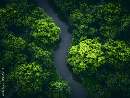 aerial, view, lush, green, forest, river, landscape, nature, tree, leaf, vegetation, foliage, wood, tropical, jungle, mangrove, eco, environment, ecosystem, wildlife, birdseye, drone, photo, overhead, top, down, perspective, scenic, beautiful, natural, habitat, growth, conservation, sustainability, earth, planet, water, creek, river bank, canopy