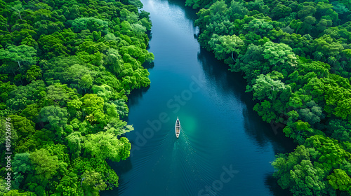 nature, forest, river, canoe, aerial view, greenery, adventure, landscape, serene, waterway, boat, tree, scenic, wilderness, calmness, exploration, untouched, environment, tropical, lush, journey, ecosystem, peaceful, natural beauty, travel, scenic view, paddling