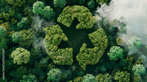 Aerial view of a forest with trees forming a circular symbol. Concept of nature conservation and sustainability. For promoting environmental awareness.