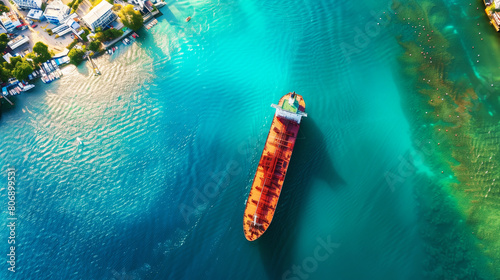 cargo ship, aerial view, turquoise water, marina, boat, shipping, transportation, maritime, clearwater