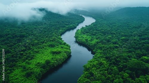 river, forest, greenery, landscape, nature, water, mist, mountain, travel, environment, ecosystem, flora, fauna, biodiversity, calmness, adventure, wilderness, scenic, aerial, serenity, exploration, habitat, conservation, beauty, flow, calm, lush, vibrant, terrain, remote, untouched, peaceful, journey, sky, cloud, natural, topography, atmosphere, ecology, scenery, picturesque, horizon