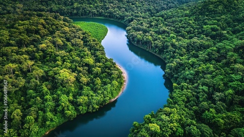 river, winding, forest, green, lush, canopy, tree, foliage, nature, aerial, view, overhead, perspective, blue, water, landscape, wilderness, jungle, tropical, vibrant, serenity, calmness, peaceful, untouched, pristine, abundant, life, ecosystem, biodiversity, environment, natural, beauty, wonder, earth, planet, growth, conservation, preservation, sustainable, harmony, balance, flourishing