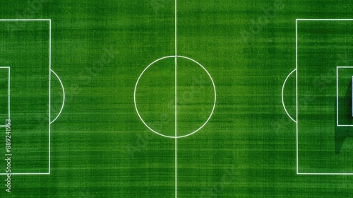 Aerial view of an empty soccer field with freshly mowed grass and clear field markings, providing a perfect setting for a competitive match.