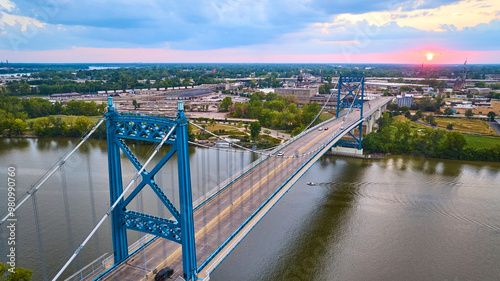 Aerial View of Anthony Wayne Bridge at Sunset over Maumee River Toledo