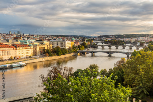 Aerial view of bridges over Vltava river in Prague, Czech Republic