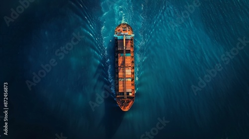 aerial view, cargo ship, ocean, sea, deep blue, deck, maritime, vessel, isolation, expansive, transportation, shipping, nautical, marin, commerce, logistic, contrast