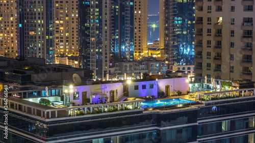 Aerial view of Dubai Marina from a vantage point night timelapse.