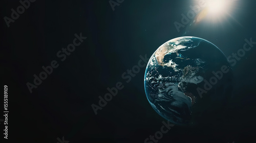 Aerial view of Earth's atmosphere with glowing blue ozone layer and dark gap symbolizing depletion, environmental protection and climate change awareness concept.