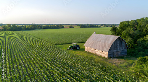 farmland, green, tractor, barn, field, sunflower, aerial, landscape, rural, countryside, agriculture, summer, sky, horizon, wooden, building, vehicle, daylight, view, crop, nature, scenic, rural scene, farm equipment, open space, country, farm, greenfield