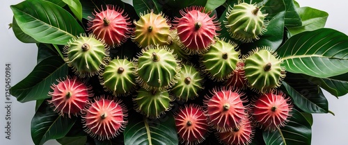 aerial, view, fresh, fruit, green, leaf, vibrant, colours, unique, texture, tropical, exotic, nature, food, healthy, natural, organic, closeup, top, perspective, colourful, botanical, summer, juicy, asian, rich, flora, harvest, farm, still life, decoration, lush, garden, dietary, nourishment, agriculture, ecosystem, edible, texture, background, sensory, visual, arrangement