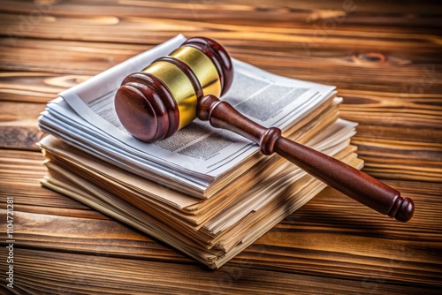 Aerial View of Gavel on Legal Documents Symbolizing Justice in a Courtroom Setting