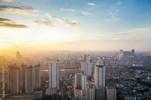 modern, landscape, jakarta, indonesia, downtown, day, city centre, city, capital, asia, urban development, capital city, highrise, aerial view, view, urban, sunset, sprawl, southeast asia, skyscraper, place, panoramic view, nobody