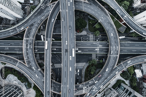 Aerial view of highway and overpass in city