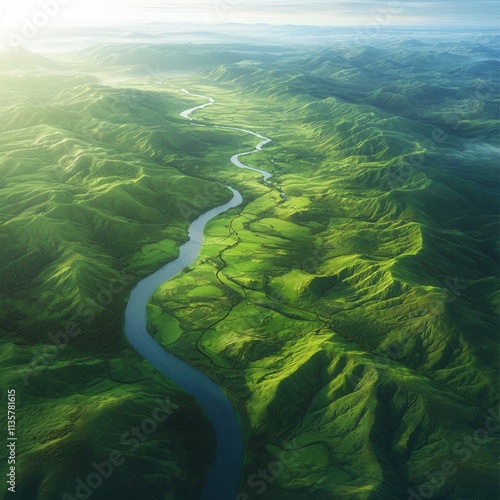 landscape, river, hill, nature, aerial, serene, calmness, geography, greenery, lush, vista, exploration, wilderness, peaceful, sunshine, panoramic, remote, vale, photo, relaxation, earth, topography, horizon, scenery, ecosystem, sunlight, vegetation, scenic, terrain, richness, hillside, freshness, biodiversity, wild, altitude, expanse, meander, beauty, flora, water, green, adventure, environment, travel, natural