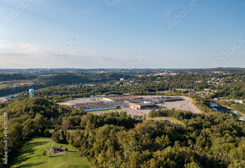 Aerial view of Morgantown in West Virginia from Dorseys Knob towards downtown. The almost abandoned Morgantown Mall in the foreground