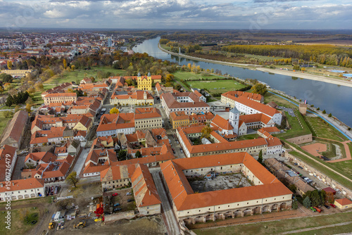 Aerial view of osijek old town tvrdja with the river, osijek, croatia.