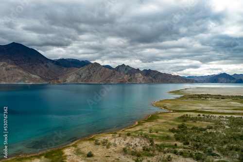 Aerial view of Pangong Tso lake, Ladakh, India.