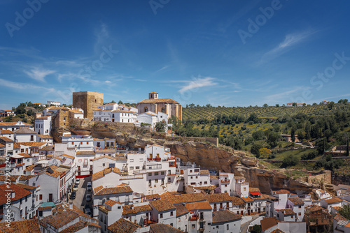 Aerial view of Setenil de las Bodegas - Setenil de las Bodegas, Cadiz Province, Andalusia, Spain