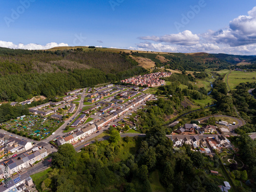Aerial View of Sirhowy River in the welsh town of Tredegar, Wales UK