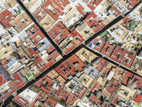 up high, aerial, architecture, building, city centre, city landscape, development, downtown, drone, historic, infrastructure, mediterranean, neighbourhood, orange, planning, red, residential, residential area, rooftop, shadow, spanish architecture, street, terracotta, tour tourism, travel, urban, city landscape, view, cadiz, spain, andalusia