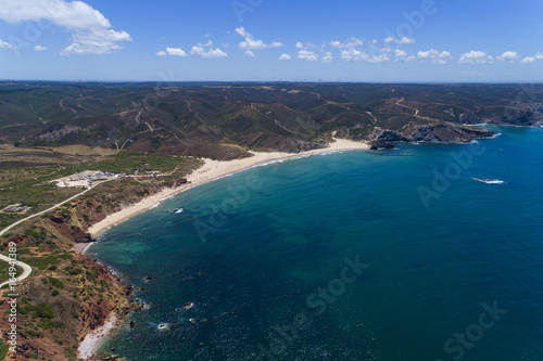 Aerial view of the Amado Beach (Praia do Amado) in Algarve, Portugal; Concept for travel in Portugal