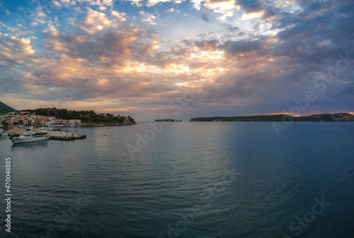 Aerial view of the beautiful seaside city of Pylos located in western Messenia in Peloponnese, Greece