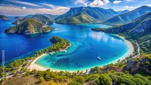 Aerial view of the stunning Blue Lagoon in Oludeniz, Turkey, Oludeniz, Turkey