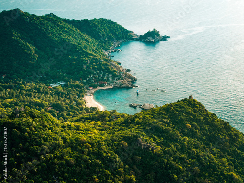 Aerial View of Tropical Island Coastline and Deep Blue Ocean,Kohtao