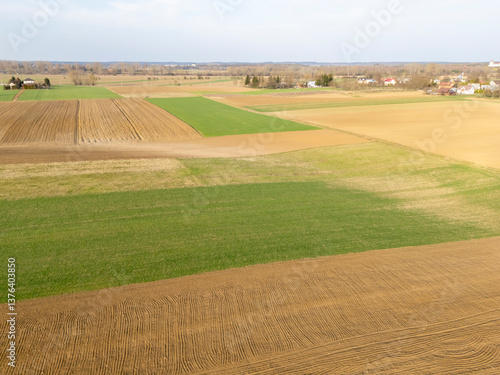 agriculture, field, farmland, aerial view, rural, landscape, green, brown, crop, farming, dirtied, nature, environment, country, sunny, horizon, landscape design, harvest, countryside, summer, spring, growth, vegetation, calmness, scenic, environmentally friendly, sustainability, ecological, biodiversity, outdoors