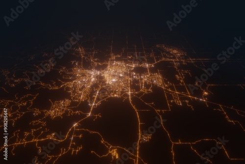 Aerial view on Rapid City (USA) from south. Satellite view on modern city at night