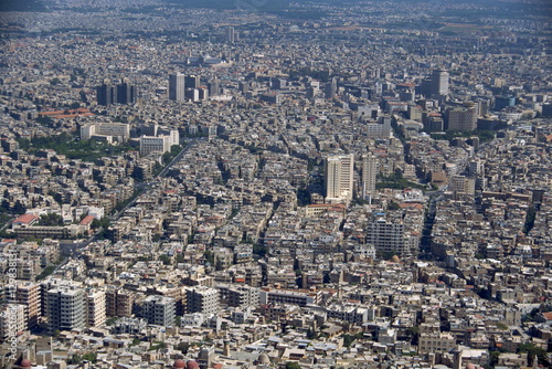 aerial, view, over, city, damascus, syria, middle east, capital city, aerial, outdoors, day, contemporary, photo