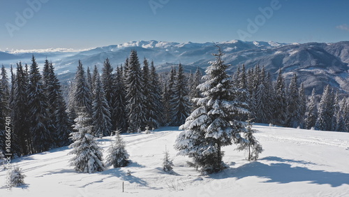 winter, snow, mountain, landscape, tree, forest, nature, scenery, aerial view, drone, winter landscape, pristine, breathtaking, panorama, serene, captivating, blue skies, clear sky, cold, frost, glacé, idylli, tranquil, peaceful, season, christmas, holiday, travel, outdoors, wilderness, beauty, environment, natural, scenic, picturesque, europa, carpathians, mountain chain, vale, slope, sunlight, shadow, snow-covered, coniferous, evergreen, wood, alpine, high altitude
