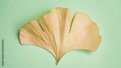 Aesthetic Close-Up of Ginkgo Biloba Leaf with Beautiful Texture Against Green Background. Highlighting the Natural Beauty and Medicinal Properties of the Plant.