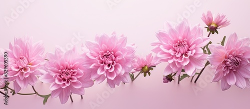 Aesthetic pink flowers displayed on a pink and white backdrop ideal for marketing materials and greetings with copy space image