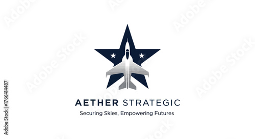 Aether Strategic logo with fighter jet and star representing defense and security.