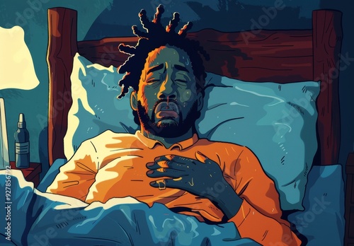 man, bed, pain, stomach, bloating, health, discomfort, deep, breath, african, american, disease, relaxation, expression, anxiety, medicals, feeling, wellness, emotion, life, struggle, body, human, therapy, condition, suffering, situation, background, care, recovery, sharpened, tension, life events, fatigue, concern, healing, awareness, vulnerability, routine, physical, health care, support, distress, stress, inner, state, reaction, treatment