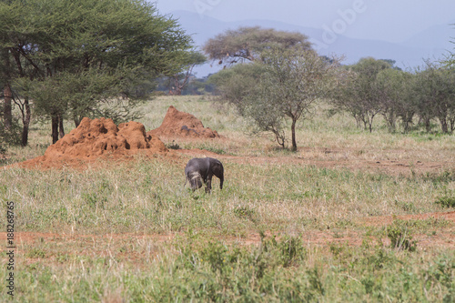 African elephants, of the genus Loxodonta in Tarangire National Park, Tanzania