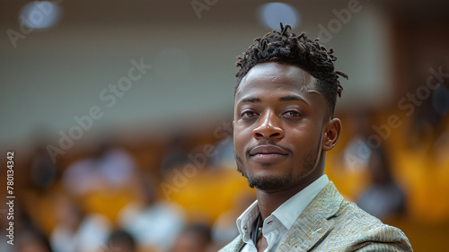 african, aspiration, associate, audience, auditorium, conference, executive, global, horizontal, leader, leadership, lecture, meeting, occupation, performance, presentation, seat, seminar, spectator, stage, teamwork, together, education, smiling, corporate, speaking, lecturer, male, professional, speaker, person, confidence, suit, businessman, happiness, looking, training, entertainment, confident, standing, entrepreneur, photo, one person, young adult, birthday, public, copy space