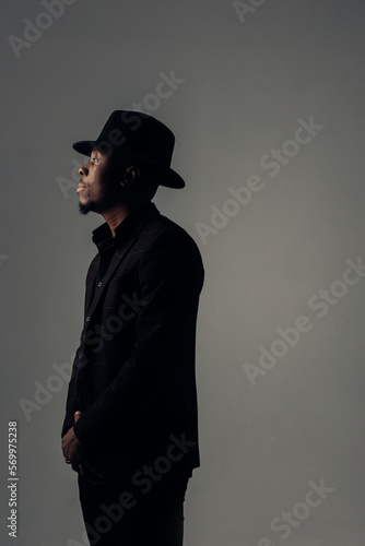 man, young, african, boss, businessman, manager, entrepreneur, confident, success, business, career, successful, confidence, job, leadership, looking, standing, hat, jacket, shirt, smart, suit, employee, employment, ethnicity, executive, guy, hair, happiness, photogenic, happy, model, multinational, professional, race, representative, work, men at work, indoor, 1, people, person, adult, male, african american, grey, background, black