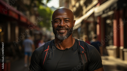 African man walking on city streets