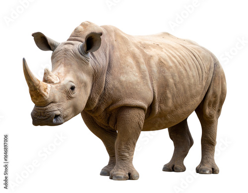 African Rhinoceros Standing Isolated on Transparent Background PNG