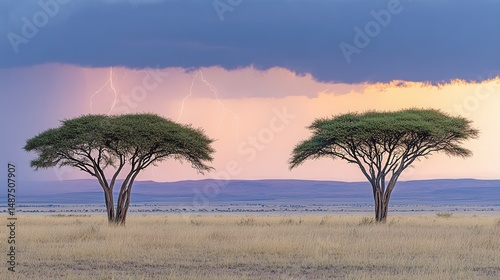 savanna, sunset, lightning, tree, landscape, africa, dramatic, nature, sky, cloud, storm, twilight, wild, photo, image, horizon, beautiful, scenic, view, serengeti, maasai, mara, travel, vacation, adventure, summer, evening, gold, pink, purple, blue, yellow, energy, power, weather, atmospheric, calm, peace, tranquil