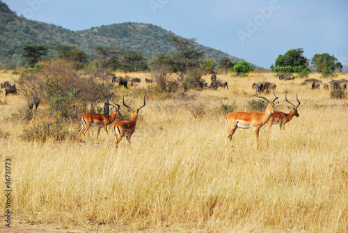 africa, kenya, safari, savanna, south, animal, tree, wild, bush, park, plain, travel, acacia, green, grass, mammal, black, horn, wilderness, wildlife, national, white, antelope, gazelle, herbivore, gnu, nature, landscape, scenery, masai, mara, sunset, evening